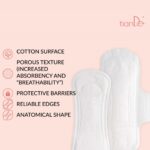 – Tampons de forme anatomique avec des barrières de rétention d’humidité, une fine couche absorbante intérieure et un motif spécial dans les zones critiques pour une protection fiable et la prévention des plis.